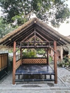 2. **Gazebo Bambu Tradisional** – Dengan atap genteng tanah liat.