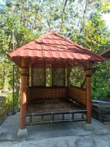 2. **Gazebo Bambu Tradisional** – Dengan atap genteng tanah liat.